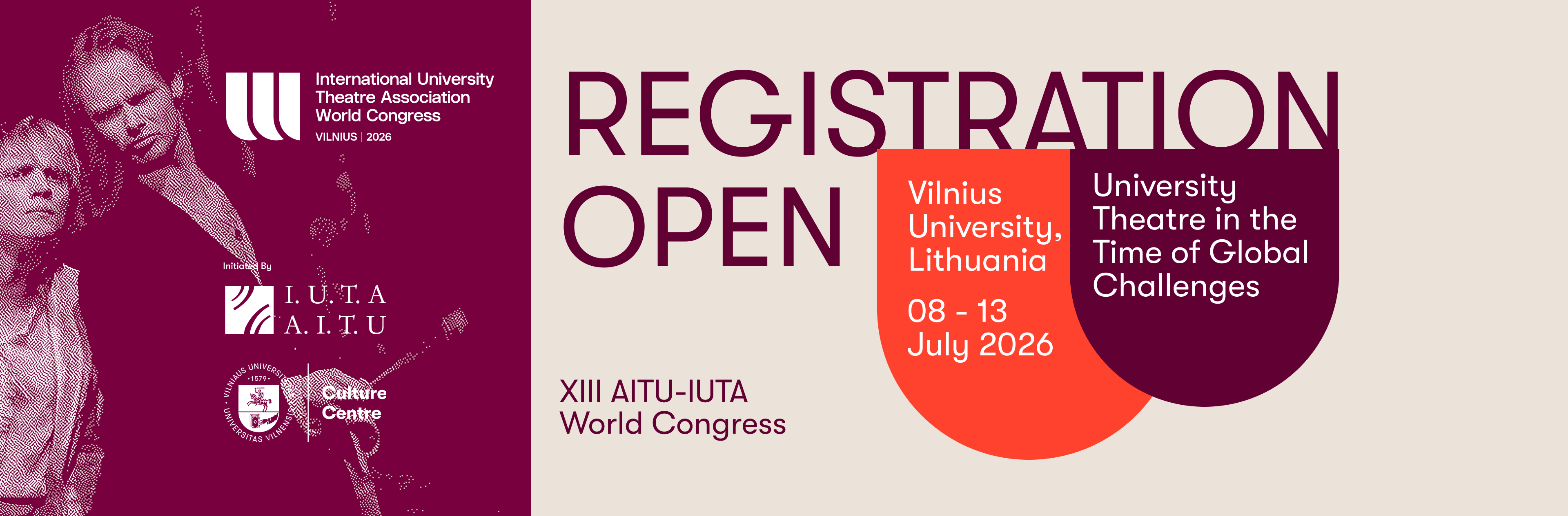 The XIII World Congress of AITU-IUTA will be held on July 8–13, 2026, at Vilnius University, Lithuania. Under the theme University Theatre in the Time of Global Challenges, the Congress will bring together international scholars, students, and artists to explore how university theatre responds to today’s pressing issues.